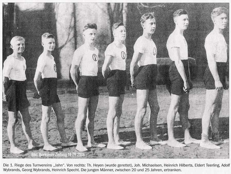 Das Segelboot muss infolge des stürmischen Wetters voll Wasser geschlagen und gekentert sein. Einer der Insassen erreichte am Dienstag, früh gegen 4.30 Uhr, die zwischen Borkum und Juist gelegene Vogelinsel Memmert schwimmend und erklärte, dass sich noch 5 bis 6 Personen im Boot befänden. Man befürchtet, dass die übrigen zwölf Insassen ertrunken sind. Bei den Insassen des Bootes handelt es sich um jugendliche Mitglieder des Turnvereins Borkum.