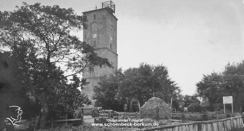 Da die Hafenstadt Emden, mit Ausbau des Hafens und einem gesteigerten schifffahrtlichen sowie einen seehandlicheren Aufschwung um 1570 hatte, wurde wegen der Steigerung des Schiffsverkehrs in der Emsmündung angedacht, den kleinen Kirchturm auf Borkum, zu einem Leuchtturm - nicht umzubauen, sondern auf dem Platz - einen 41m hohen Turm - mit einer 9m hohen Schiefer gedeckten Spitze, neu zu errichten.